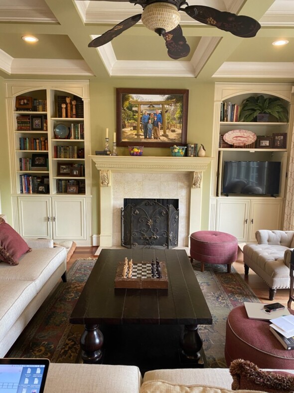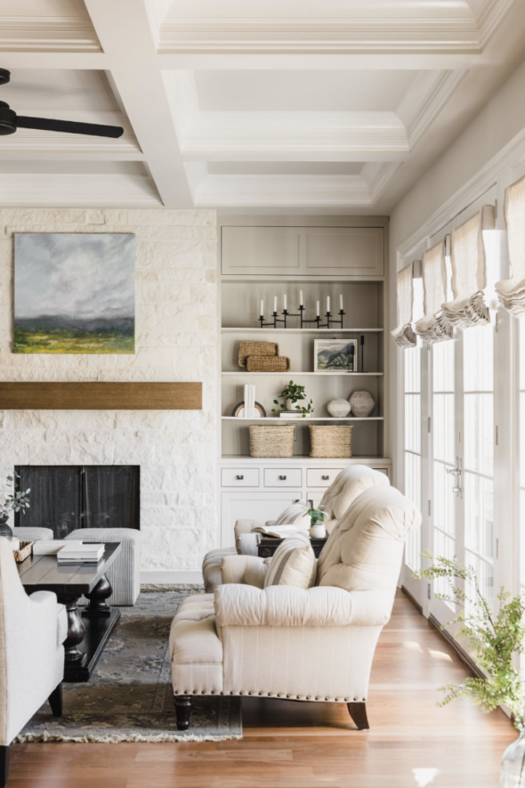 In the living room, we designed the built-ins, fireplace surround and then we styled the space.