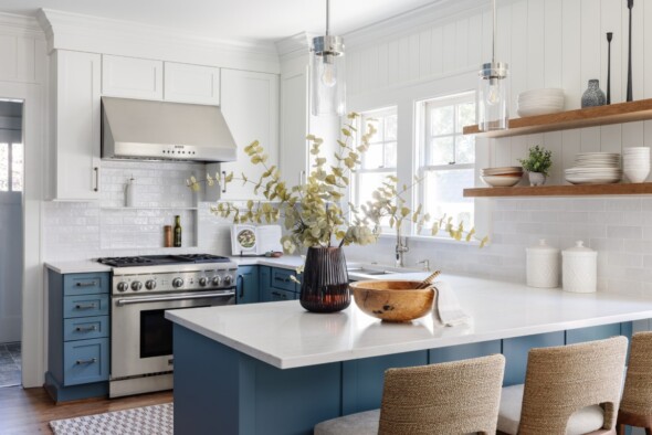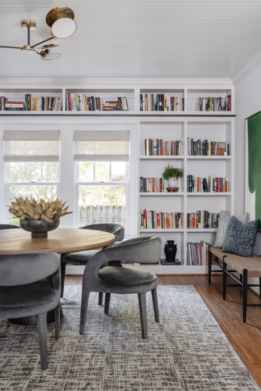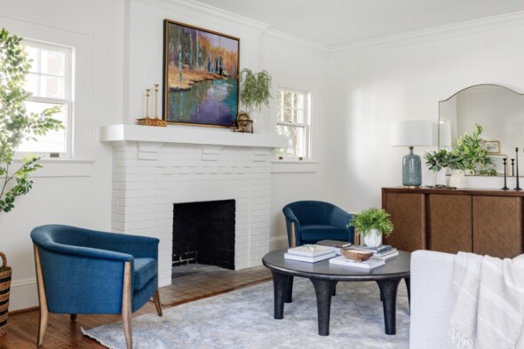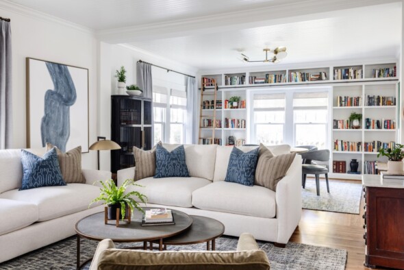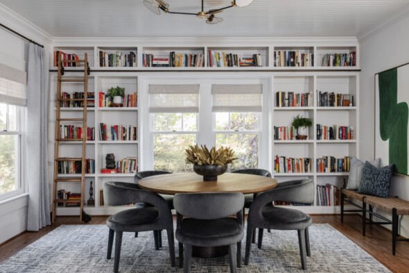 Our customers have lived in this Dilworth bungalow for more than 2 decades and wanted to bring new life into their dated home! This large-scale renovation included a new mudroom, kitchen updates including shiplap walls, painted cabinets, and new countertops, updated lighting throughout, an updated family game room that includes built-ins and a library ladder, a master ensuite renovation including all new bathroom finishes and custom paneling on the walls, a renovated laundry room, and built-ins in fun spaces to house the customer’s book collections! This fresh, comfortable new aesthetic has breathed new life into this home for decades to come. New furnishings and upholstery courtesy of Tyler Interiors.