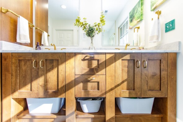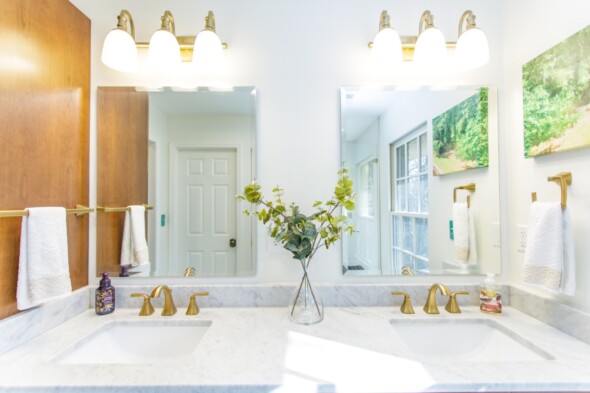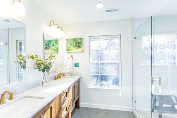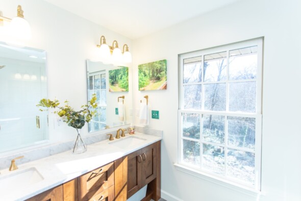 A young couple purchased the 1950’s brick ranch that was in need of a primary ensuite. We enlisted the help of Alison Hall to help design a large bedroom, walk-in closet (non-existent in homes this age) and a large ensuite bath by combining two existing bedrooms.